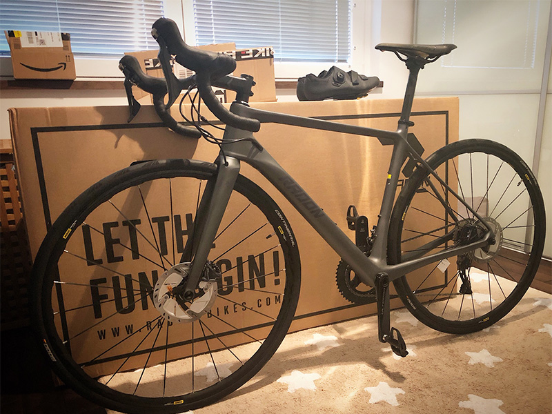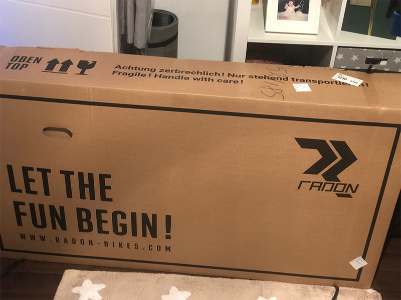 Weil auf dem Rad eine Ultegra Gruppe verbaut ist, habe ich mir die passenden Ultegra Pedale dazu bestellt, Rennradschuhe mit SPD Clicks sowie ein grelloranger Abus Helm haben sich dann auch noch im Einkaufskorb dazugesellt. Ja, da läuft die Kohle! 4 Tage später ist dann das Radon Spire inkl. zusätzlicher Ausrüstung bei mir eingetrudelt. Der Zusammenbau war äußerst einfach – das hab’ sogar ich bewerkstelligt – denn das Rad ist ca. zu 80% vormontiert im Karton angekommen. Nur die Schaltung war ziemlich verstellt, das hat dann noch das Studium eines YouTube Tutorials nach sich gezogen. Schlussendlich hat das aber dann ein Freund von mir erledigt – Grüße von meinen 2 linken Händen 😉