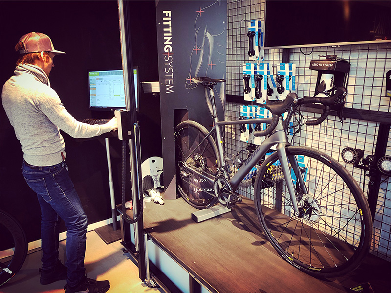 Als ich dann 3 Wochen später zum Vormittagstermin eintrudelte, kam mir gleich der Shopbesitzer Christoph entgegen – Fitten ist bei Pbike Chefsache. Bei einem leckeren Kaffee auf der Couch haben wir einmal den Status quo besprochen und wohin mein sportliche Reise gehen soll. Dann ging es ans Eingemachte. Bei der Körpervermessung gleich einmal die erste große Überraschung: meine SL war nicht 83cm sondern 85,3cm – bei 174cm also überdurchschnittlich lang, das wäre mir bis jetzt beim Hosenkauf nie aufgefallen. Auch die Armlänge von 58,6cm ist über dem Durchschnitt.